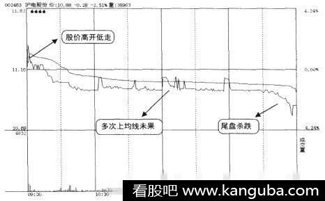 (1)大盘出现上涨,个股下跌且属于真弱,操作上建议立即离场。如图1是大盘2011年6月14日当天的分时走势图,