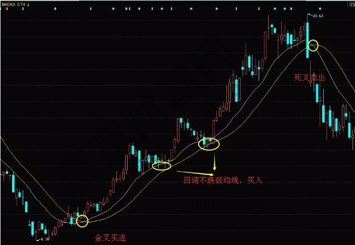 2、 多空线上升期间,K线回调,不跌破MADKX均可以加仓。