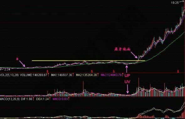 在股价离开地面之前,往往会出现【UP】、【UV】等。