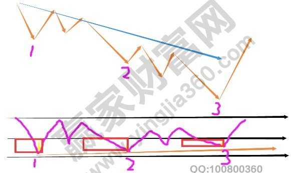 对于MACD,两条线的背离是重要信号。图中1,2,3点都是阶段低点,1点也许低于2点,也许高于2点,这是次要的,主要的是3点,要求必须新低,这是准确率的保证。MACD归于趋势指标,也许就是这么来的吧。